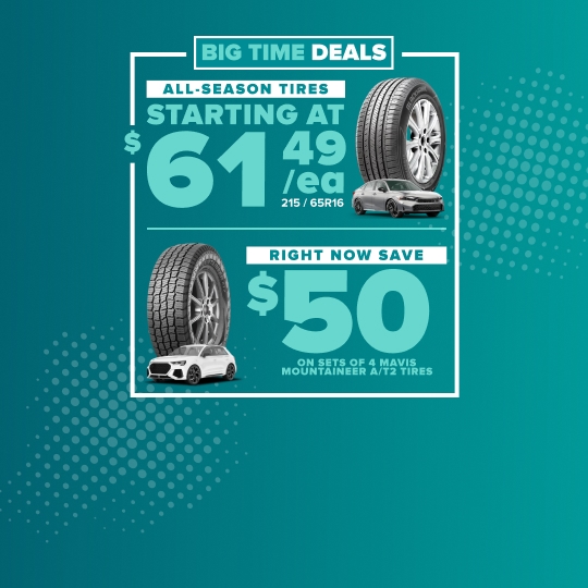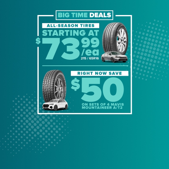 Mavis buys tires at national scale, which allows us to secure better pricing from manufacturers and pass those savings directly to customers. We constantly move tires across our national network, so you get same-day or next-day installation at most locations. Our goal is transparent, everyday low prices on high-quality tires and services.