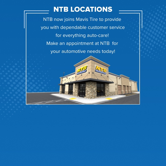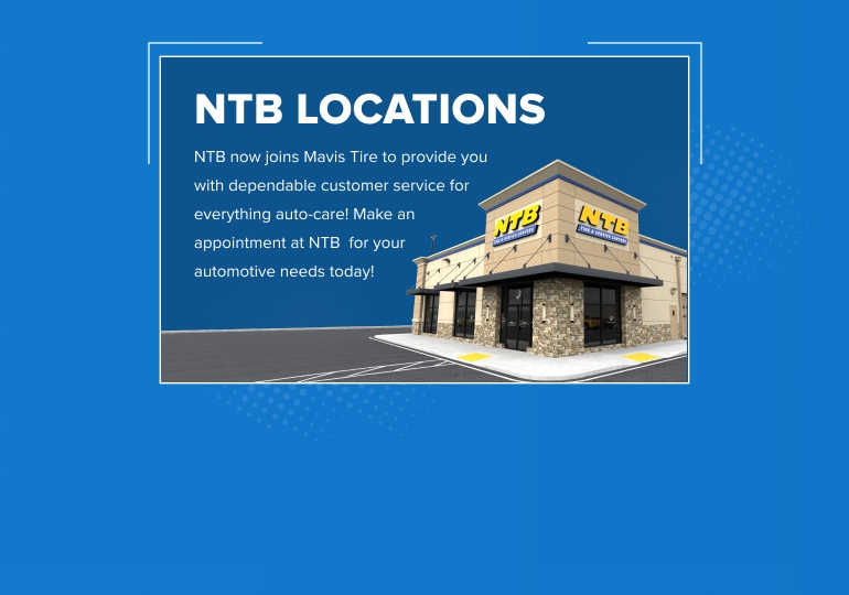 NTB now joins the Mavis Tire Family to provide smooth automobile assistance. We offer quick, easy access to over 2,100 convenient locations to help you get back on the road.