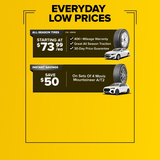Offer valid on sets of 4 Mavis Mountaineer A/T2 tires