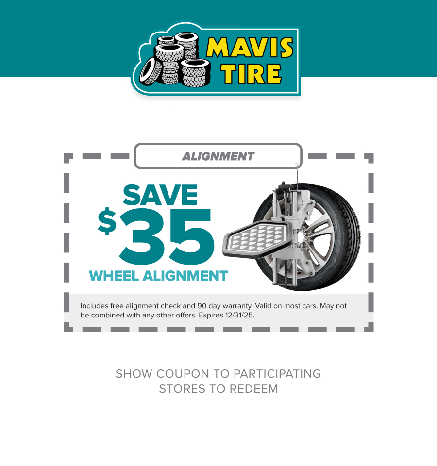 You should have a professional check your wheel alignment every six months or 6,000 miles, or if your vehicle seems to be drifting to one side or the other. Misalignment can also be indicated by a steering wheel that is not centered or uneven tire wear. If you’ve recently been in a car accident, encountered a few potholes, or noticed any signs of misalignment, it is a good idea to have your vehicle checked. Schedule an appointment at your local Mavis to ensure your vehicle's alignment is in top condition.