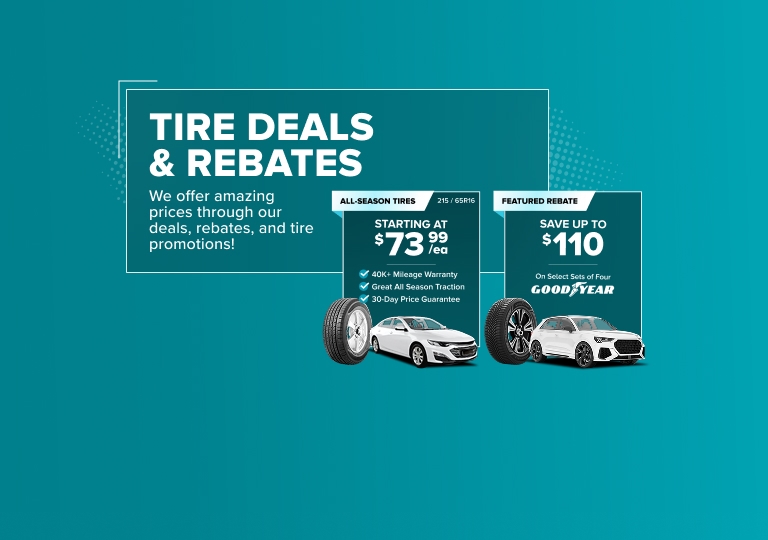 On the rare occasion that you find tires sales at a lower price, just submit the ad, tire size, and brand to our Price Buster Squad. You'll be shown available tire deals at the same price. Take advantage of our exclusive tire sales and get the best deals on high-quality tires for your vehicle. Save more with our unbeatable tire sales today!