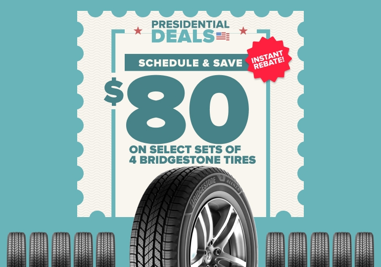 Redeem $80 instantly after you purchase 4 select Bridgestone tires. Offer valid through 2/16/26.