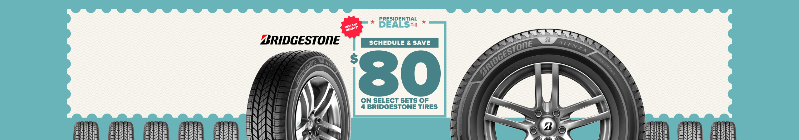 Redeem $80 instantly after you purchase 4 select Bridgestone tires. Offer valid through 2/16/26.