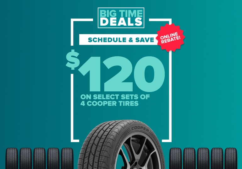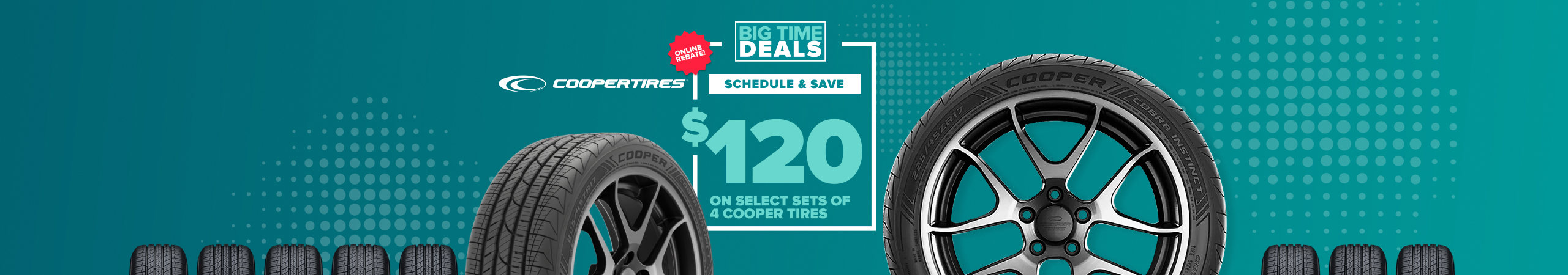 Download and mail-in this rebate form or fill it out online to save $70 on your purchase of 4 select Cooper tires. Plus, an extra instant $50 in online-exclusive savings. Offer valid through 6/30/26.