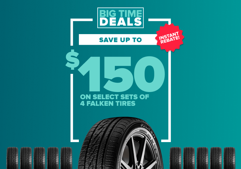 Redeem up to 100 instantly after you purchase sets of 4 Falken tires. Plus, an extra instant $50 in online-exclusive savings. Offer valid through 4/30/26.