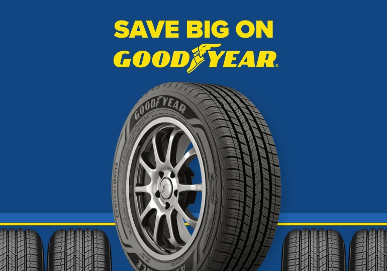 Get up to $100 back by online or mail-in rebate on a set of 4 select Goodyear® tires when you use the Goodyear, NTB, Tire Kingdom or Mavis Credit Card. Paid by prepaid card or virtual card on qualifying purchases made 11/1/2025 through 12/31/2025.*