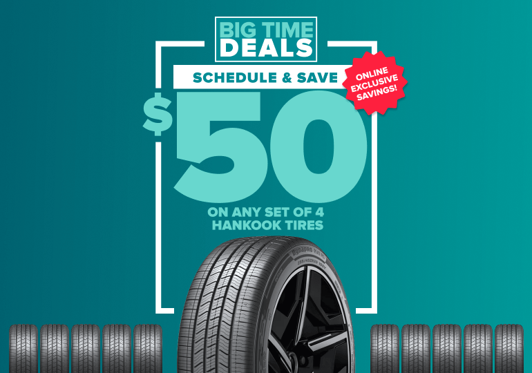 Schedule your appointment now for an instant $50 in online-exclusive savings when you purchase any set of 4 Hankook tires.