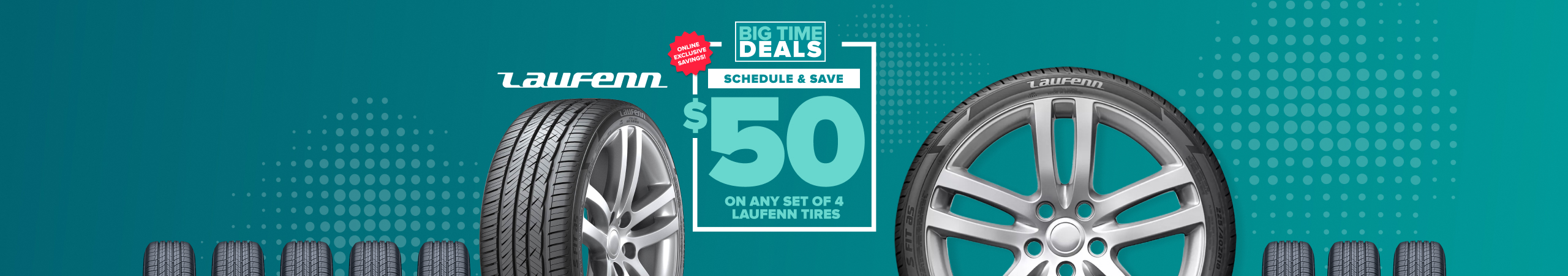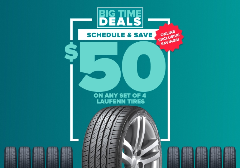 Schedule your appointment now for an instant $50 in online-exclusive savings when you purchase any set of 4 Laufenn tires.