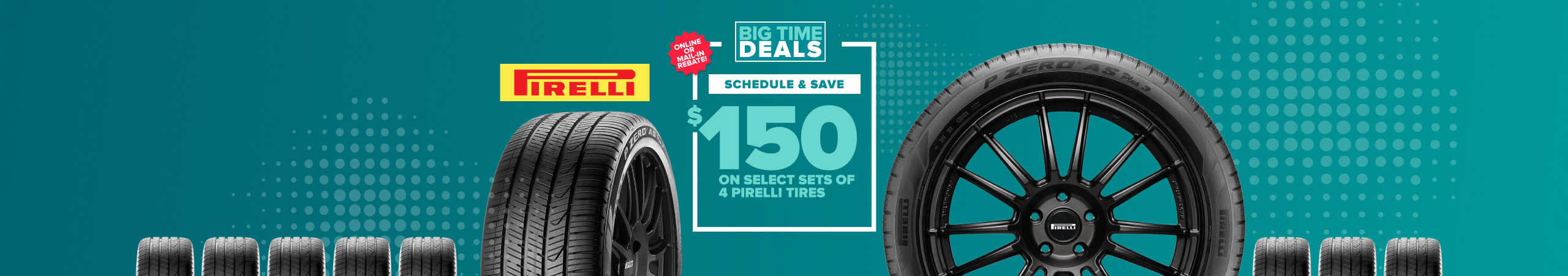 Save $100 through online rebate with purchase of 4 P7 AS Plus 3 Pirelli tires. Plus, an extra instant $50 in online-exclusive savings. Offer valid through 3/31/26.