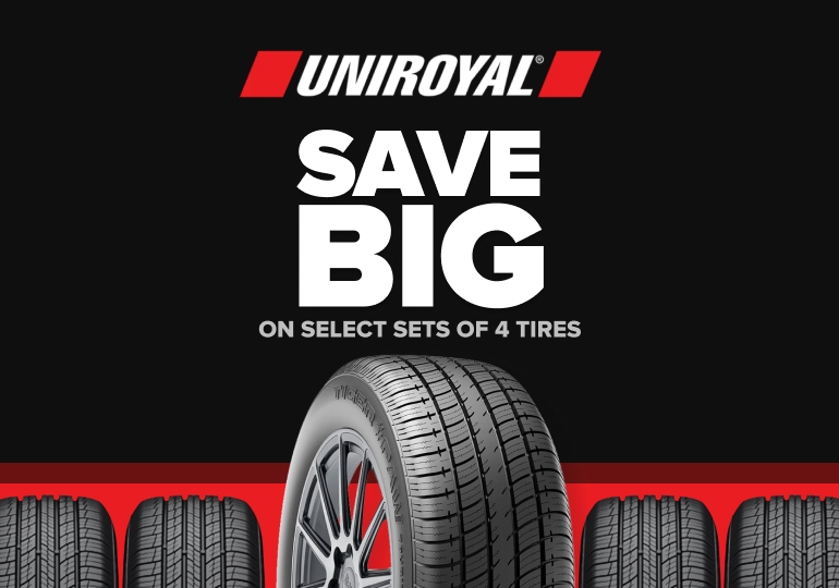 Fill out this rebate form online to save $100 on your purchase of 4 select Uniroyal tires. Offer valid through 12/9/25.