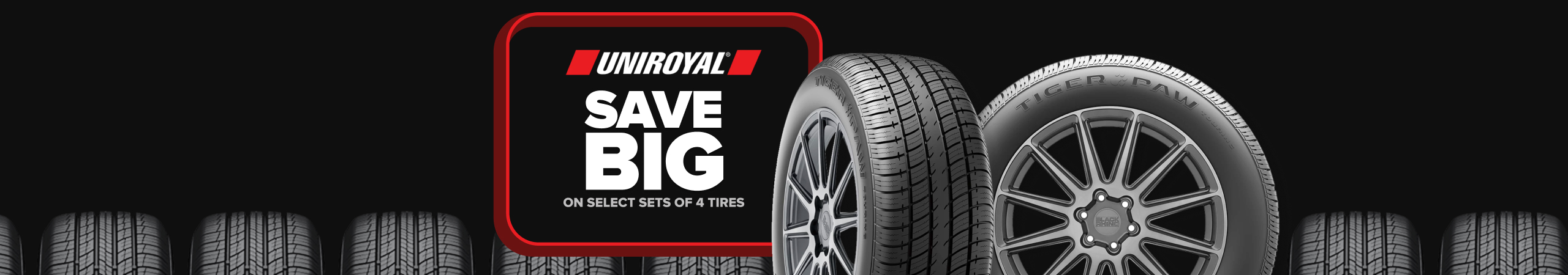 Fill out this rebate form online to save $100 on your purchase of 4 select Uniroyal tires. Offer valid through 12/9/25.
