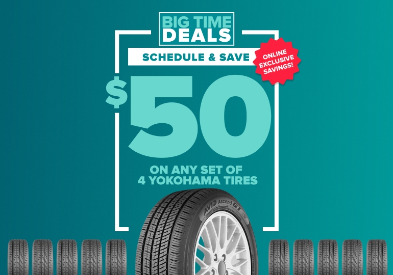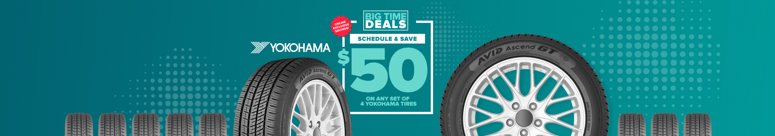 Schedule your appointment now for an instant $50 in online-exclusive savings when you purchase any set of 4 Yokohama tires.