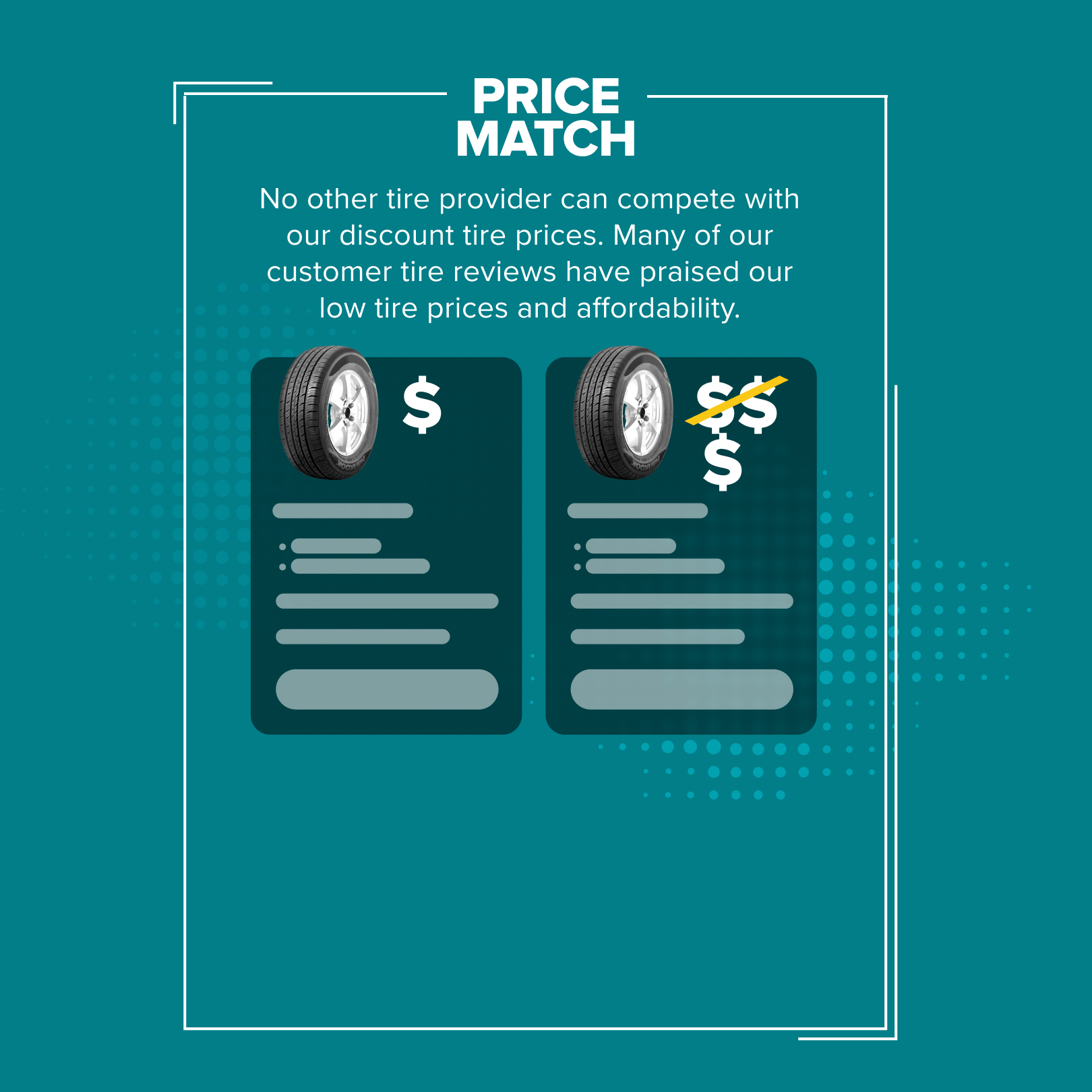 Mavis Discount Tire features a 30-day price guarantee. If you find the same tire for a lower price 30 days after your purchase, we'll refund the difference plus 5%. That's money in your pocket!