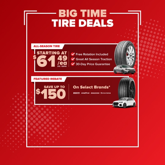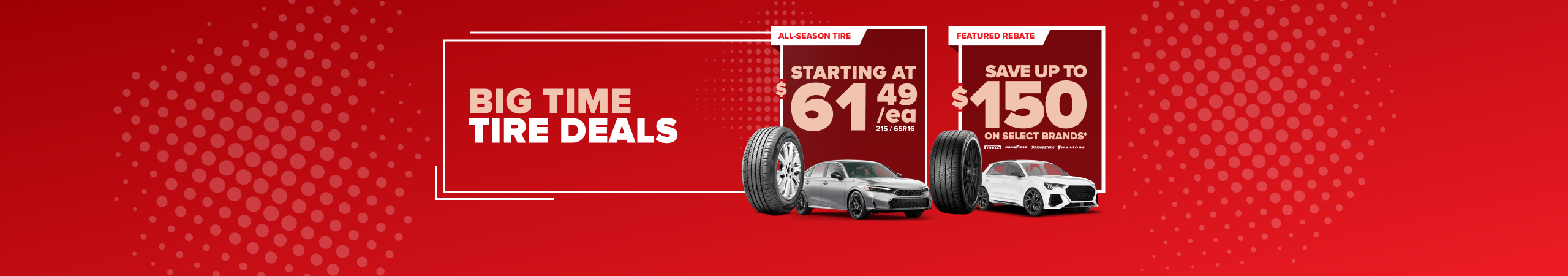 On the rare occasion that you find tires sales at a lower price, just submit the ad, tire size, and brand to our Price Buster Squad. You'll be shown available tire deals at the same price, within an hour of submission.