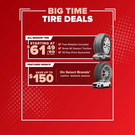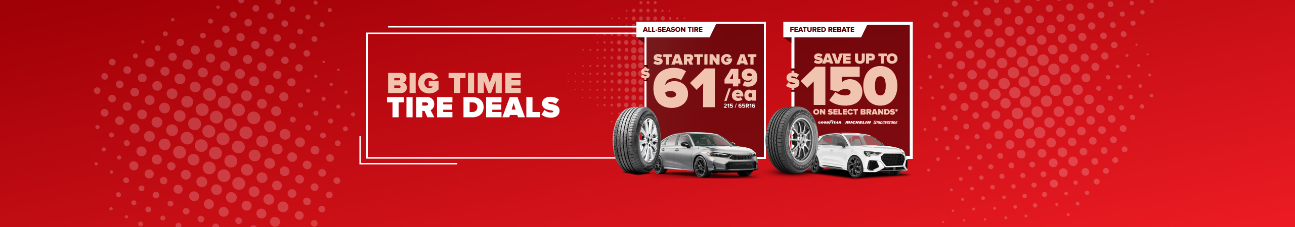 On the rare occasion that you find tires sales at a lower price, just submit the ad, tire size, and brand to our Price Buster Squad. You'll be shown available tire deals at the same price, within an hour of submission.